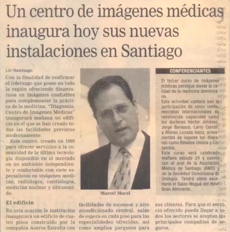 La historia de Diagnosis comienza con la visión del doctor Morel, quien en 1987 instaló el primer mamógrafo privado de toda la región del Cibao. Ese paso marcó el inicio de una nueva etapa en la prevención y detección temprana del cáncer de mama en nuestro país.