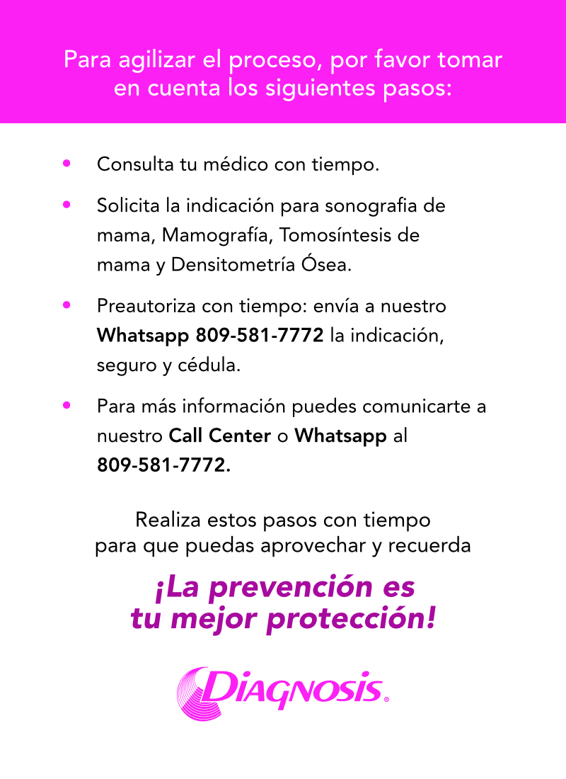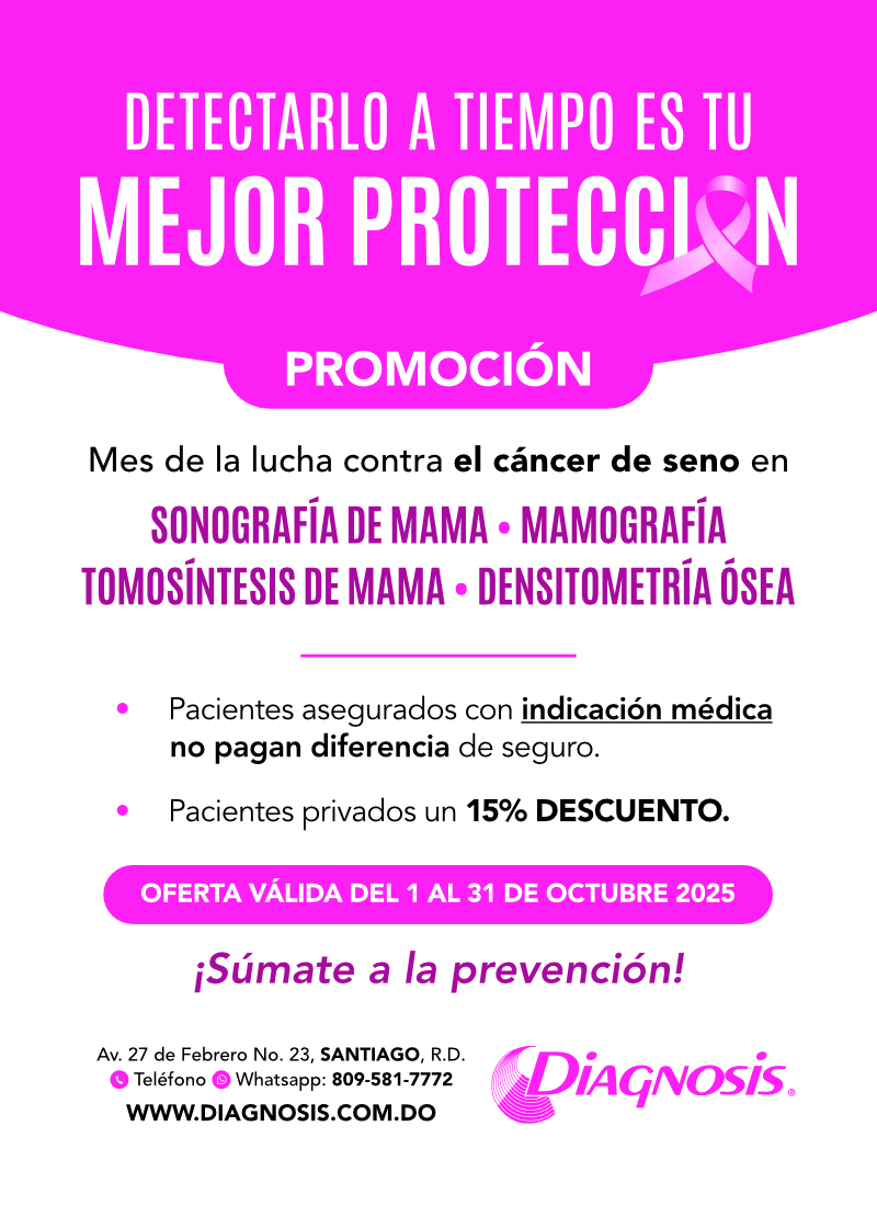 Diagnosis te brinda una oferta especial en este mes de Octubre como parte de nuestra campaña de concientización y detención temprana del cáncer de seno.